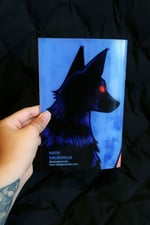 This comic comes with two stickers and a double sided postcard (pictured in the last slide! It comes wrapped in black tissue and a red seal.